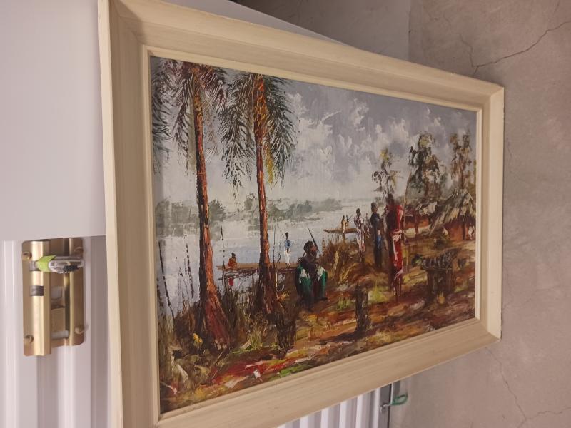 I believe he was a Congolese painter born in 1938. It's a nice piece, hard to sell. I'd call it $350 if I were doing an insurance appraisal, but if you can get $150 you can probably call yourself an art dealer. The market for secondary artists is weak.