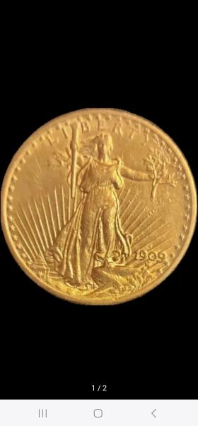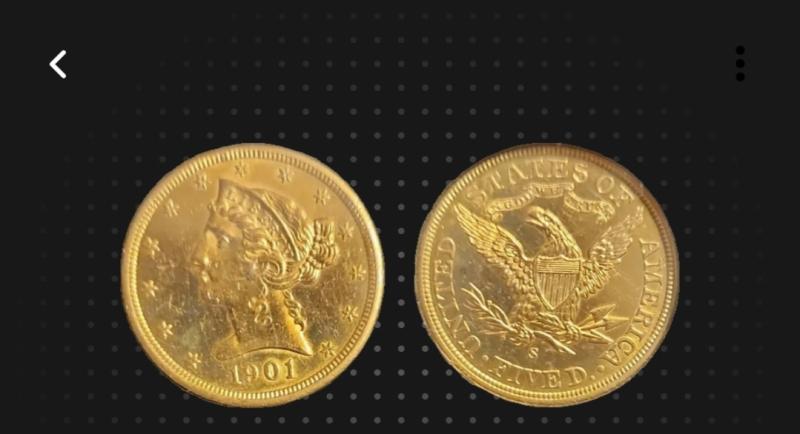 The double eagle ($20) is worth around $3,300. If the other is $5, $850; if it’s $10, $1,700.