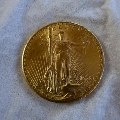 D. 1 1928 twenty dollar gold coin, 8 silver dollar coins dating from 1880 to 1923. Btw, heard your advertisement on the radio, 107.1 the peak.