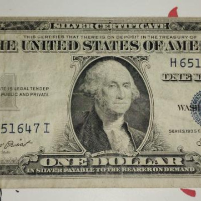 D. Silver certificate doller series 1935 E miss print