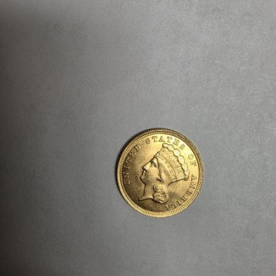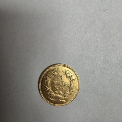 D. 1877 3 dollar gold coin.