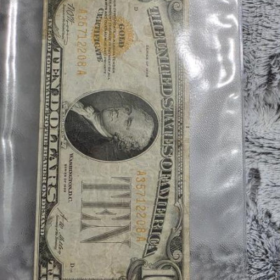 D. 1928 Gold certificate circulated but in decent shape, its in a protective sleeve.