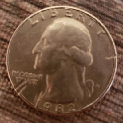 D. 1982 Quarter with stricking errors, part of the side of the coin is almost wavy