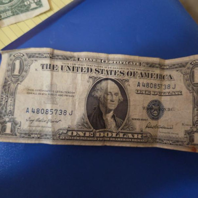 D. Silver Certificate series1935F dollar bill. I have read worth 3-5$ but some "collectors" eBay ASKING 500-1k. Confused
