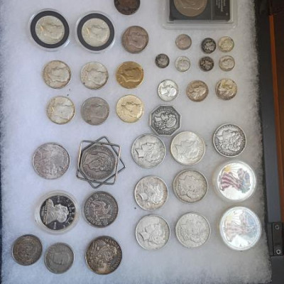 Nice! We usually do one or two complimentary coin appraisals. Here's a trick for pre-1965 silver, dimes and higher: Multiply face value by 60 to get a rough idea of what they are trading at, e.g., $30 for a 1964 half dollar. Halves 1965-70 are 40% silver and half that. Let us know if you want to come in for an appraisal or offer. Marc