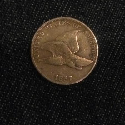 D. 1857 big penny also flying eagle