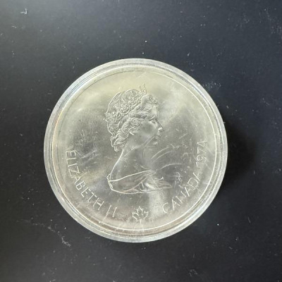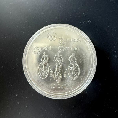 D. 1974 Montreal Olympic $10 coin. Still in plastic case. Never been opened. Scratches in photo are on the case, not on the coin. I have 2 of these. Also 2 $5 coins and a 1993 Stanley Cup Proof Dollar. Thanks for any info you might be able to share.