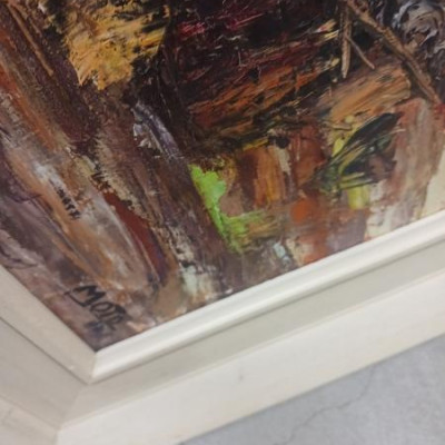 D. I have my grandmother's Alphonse Moto oil on canvas painting from 1960's-1970's era. Is in excellent condition except for a bit of wear and tear on the paper covering the back.